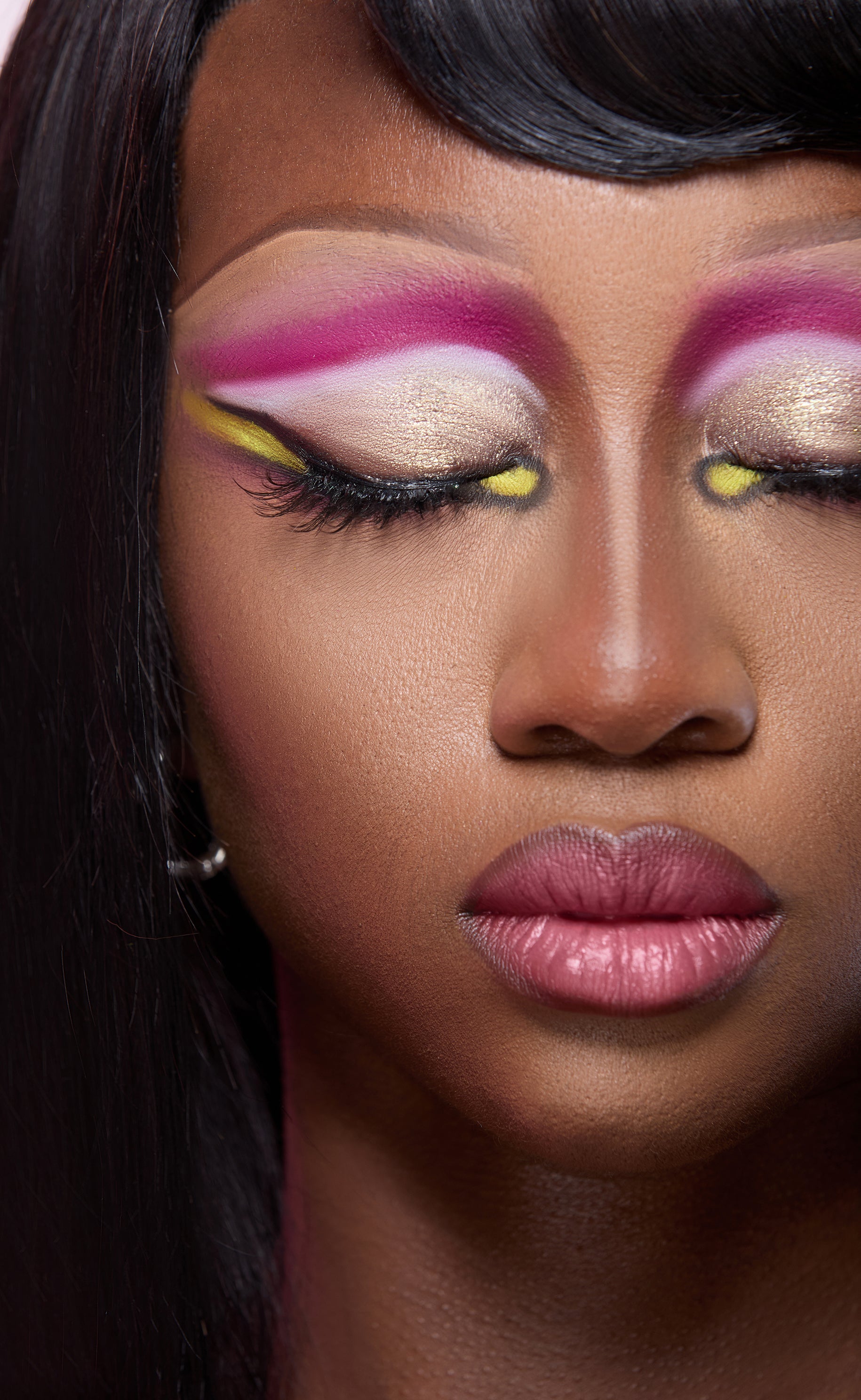 Des roses flamboyants et un jaune citron électrique se confrontent à des nuances nocturnes intensément pigmentées, pour une couleur ultra bold et un estompage sans effort.